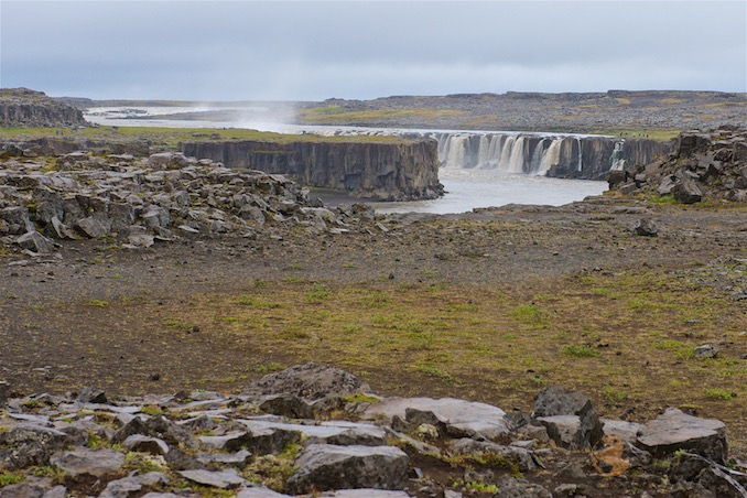 I oto jest , wodospad Dettifoss, który powstał na progu w wąwozie Jökulsárgljúfur na rzece Jökulsá á Fjöllum, z którą to mieliśmy już wielokrotnie do czynienia w interiorze gdzie poznawaliśmy jej powstawanie.  Spektakularności dodaje fakt, że woda na tym wodospadzie przelewa się przez skośny próg o długości 100 metrów. Powyżej tego wodospadu znajduje się jeszcze mniejszy wodospad Selfoss. Tłumy gęstnieją , punkty widokowe zapełniają się, robi się ciasno. Wszak to żelazny punkt programu turystycznego i łatwo dostępny bo prowadzi do niego piękna asfaltowa droga. Biorąc pod uwagę objętość przepływu, szerokość i wysokość jest to jeden z najbogatszych w energię wodospadów Europy. Przez próg 45 m w dół przepływa w zależności od pory roku do 193 m3 wody na sekundę. W 2011 roku Dettifoss brał udział w scenie otwierającej film Prometeusz.