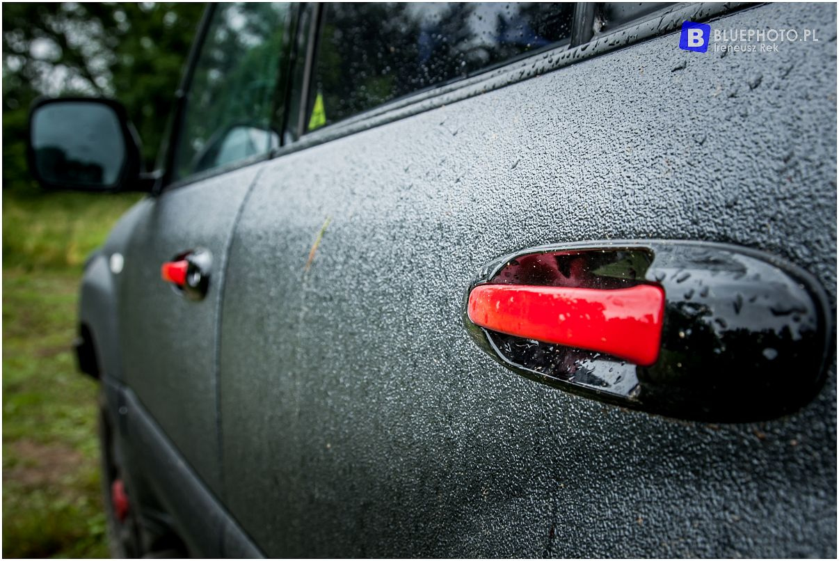 Najbardziej widoczną offroadową modyfikacja auta poza zderzakami z Fabryka4x4.pl oraz osłonami aluminiowymi Coyot.pl jest powłoka nałożona na lakier. Czarna, z lekkim perłowym poblaskiem znakomicie chroni karoserię przed zbyt bliskim kontaktem z przyrodą. Użyty materiał to technologia Line-X. Nałożona warstwa ochronna pozwala skutecznie zabezpieczyć karoserię przed korozją i odnowić najważniejsze części samochodu, a także odpowiednio je zakonserwować. Chroni także przed promieniowaniem UV, zwiększa trwałość i połysk. Malowania dokonano w MULTI-FINISH w Inowrocławiu. Aby auto miało bardziej indywidualny charakter, dodano w nim czerwone elementy które ciekawie komponują się z czarnym kolorem powłoki X-Line. Czas pokaże jak powłoka sie sprawdzi. Dobrze położona powinna posłużyć latami.