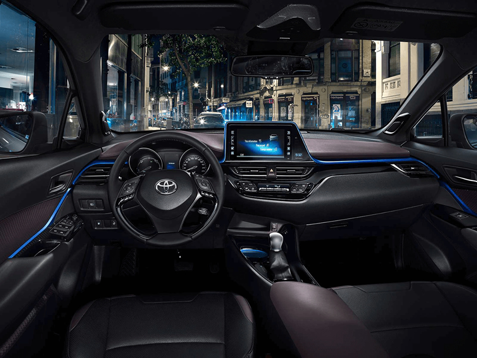 Wnętrze C-HR jest realizacją nowej koncepcji stylistycznej Sensual Tech, łączącej funkcjonalność nowoczesnych technologii z najwyższą jakością materiałów i inspirującym stylem. Projekt przestronnej kabiny jest skoncentrowany na komforcie kierowcy.