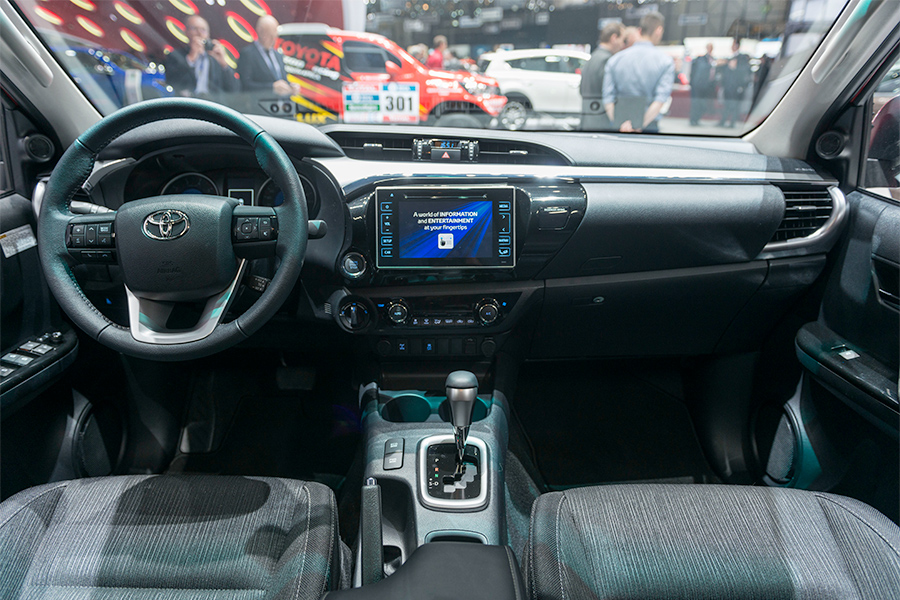 Dostęp do kabiny nowej Toyoty Hilux ułatwia system Smart Entry/Smart Start oraz elektryczny kluczyk. Wnętrze auta jest połączeniem trwałości i funkcjonalności, jakich oczekuje się od każdego pojazdu cechującego się stylem i bogatym wyposażeniem na poziomie SUV-a.