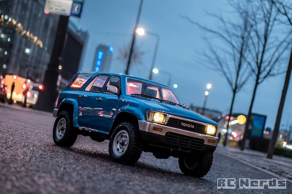 Tym razem prezentujemy nie pojazd poruszajacy się w codziennym ruchu ale efekt pracy pasjonata, który wykonał jego replikę w skali 1:10. Podstawą projektu był produkt firmy Pro-Line czyli karoseria z lexanu Toyoty 4Runner. Aby nadać jej bardziej realistycznego wygladu RC Nerds zaprojektował do niej nowe części. Dodał grill, zderzaki, lusterka, klamki, tylny panel świetnlny itp. Części zostały zamówione i wykonane dzieki serwisowi Shapeways. Jest to miejsce gdzie pasjonaci mogą wrzucać swoje projekty 3D a potem zamowić ich wydruk. Gotowe wyrduki własnoręcznie wykończył, pomalował i zamontował w karoserii. Sama skorupa (nadwozie dostarczane jest jako bezbarwna wytłoczka) została realistycznie pomalowane. Calość od momentu projekowania do efektownego finału zajeła 3 miesiace pracy po 2 lub wiecej godzin dziennie, z czego połowa tego czasu to faza projektowania.