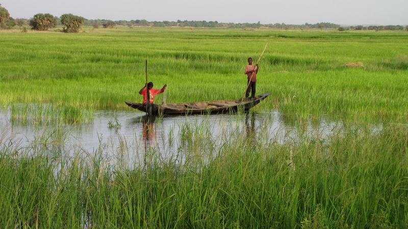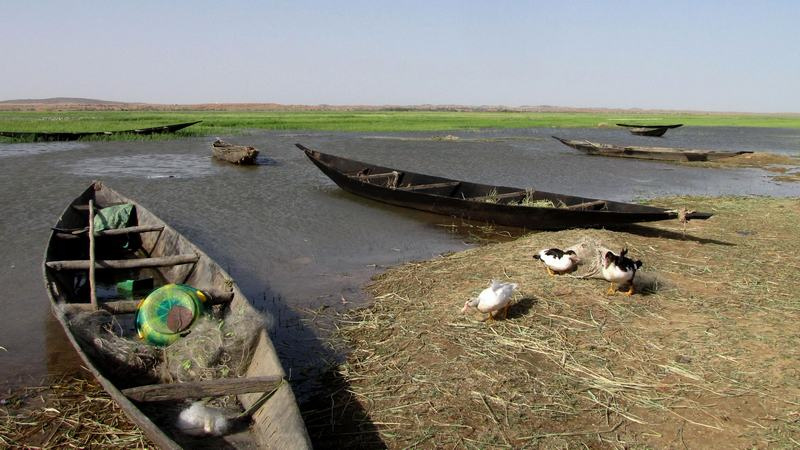 Rano jedziemy do jedynej atrakcji tego miasta „Tombeau Des Askia” (wstęp 1500 CFA od os.). Budowla w kształcie piramidy z cegły suszonej jest przypuszczalnym miejscem pochówku Muhammada I Turego (Askii), założyciela średniowiecznego afrykańskiego królestwa Songhaj. Budowla wraz z przyległym kompleksem dwóch meczetów, cmentarza i placu zgromadzeń, została w 2004r. wpisana na listę światowego dziedzictwa UNESCO. Od 2012 roku, znajduje się na liście obiektów zagrożonych ze względu na trwający konflikt w Mali. Grobowiec uchodzi za jeden z najlepszych przykładów glinianych budowli w tradycyjnym stylu budownictwa strefy Sahelu. Mierzy 17 metrów wysokości, co czyni go najwyższą przedkolonialną budowlą w regionie. W zasadzie nic szczególnego, weszliśmy na szczyt, z którego jest widok na miasto i po 15 minutach jedziemy w kierunku granicy z Nigrem. Co do miasta Gao, to coś na wzór rozległego więzienia, tyle tylko, że… nikt nie posiada wyroku,.. wszędzie są beczki z piaskiem, druty kolczaste, koncentriny, kraty, bazy wojskowe, auta szturmowe, policja i kontrole, a wszystko to sponiewierane kurzem, śmieciami i co najistotniejsze… dramatem ludzkim. Wyjeżdżamy, nowa, wspaniała droga biegnie wschodnim brzegiem rzeki na południe, urozmaicona szykanami z beczek, opon kamieni oraz kontrolami. Malownicze krajobrazy z wijącą się tonią srebrzystej wody, pomiędzy zielonymi łąkami w czerwono-brązowej scenerii pustyni. Droga pusta, patrolowana przez wojska UN. Mijamy kolejne wioski, zajeżdżamy nad brzeg Nigru.