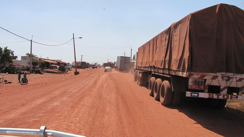 Co po drodze? Skończyły się baobaby, zaczęły drzewa i krzaki, wielu ludzi handluje drewnem, owocami, pomidorami, cebulą, kapustą, bakłażanami i nieustająco paliwem z butelek. Po 250km walki kończy się ten koszmar i wjeżdżamy do stolicy Mali, Bamako. O dziwo jest tu większy porządek i nieco czyściej. Na stacji paliw poznajemy sympatycznego przewodnika o imieniu Ali i za jego sprawą (5tys. CFA za naszą trójkę), docieramy do kompleksu turystycznego położonego nad samym brzegiem rzeki Niger „Hotel Plage” (koszt 26tys. CFA za pokój). Po zakwaterowaniu, taksówką wraz z nim, udajemy się na zwiedzanie stolicy Mali.