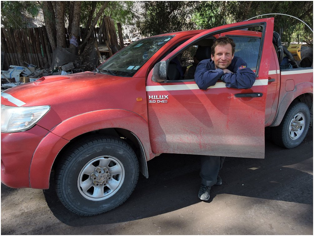 Startujemy od południa. Lecz zaraz, zaraz. Wpierw trzeba wynająć samochód. I w każdej wypożyczalni usłyszymy to samo. Na lżejsze trasy proponujemy taki, taki lub taki samochód a na trudniejsze Toyotę Hilux. Nieważne gdzie jesteś - Afryka, Ameryka, Europa czy Azja – Toyota Hilux chyba na wszystkich kontynentach postrzegana jest tak samo. To już kultowy samochód z napędem na wszystkie koła o wybitnie dobrych właściwościach terenowych. Gdy potrzebuję auto na trudną off-roadową trasę zazwyczaj słyszę, że powinienem wziąć Hiluxa, bo inne pojazdy mogą nie podołać. I coś w tym jest. Ten model nigdy mnie nie zawiódł a inne owszem. Jedne mają problem z odpalaniem na dużych wysokościach, inne zbyt słaby napęd 4x4. Natomiast Hilux jawi mi się jako bardzo dopracowana konstrukcja. Niedawno na rynku pojawiła się jego ósma edycja. Mam więc swoją „camionetę”, jak w miejscowej nomenklaturze określa się auta terenowe, dostawcze i pick-upy.