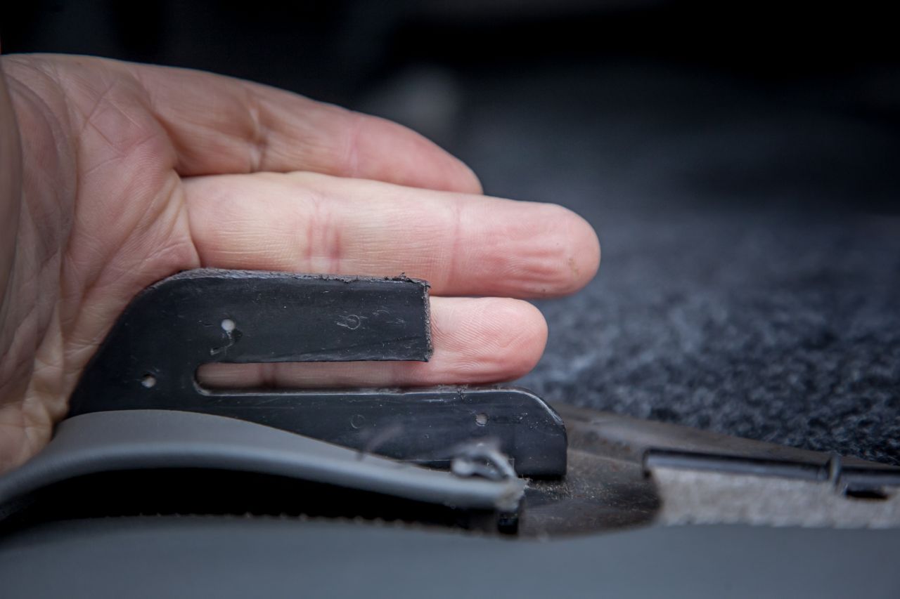 Co da nam taka operacja? Po ponownym przykręceniu kanapy i złożeniu oparcia wystarczy pociagnąć za taśmę do składania siedziska. Oparcie kanapy wówczas się unosi i wypina z zaczepów. I mamy dostep do nowego schowka!. Żeby go zamknąć wystarczy podnieść oparcie, oprzeć o gródź i znów pociagnąć za taśmę. Oparcie się uniesie i zaczepi o uchwyty.